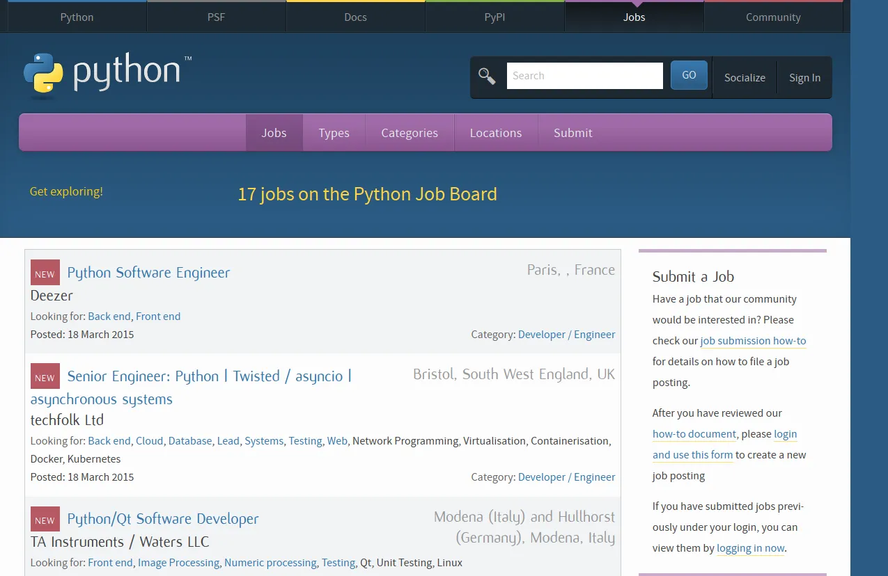 We are happy to announce that we have successfully relaunched the PSF Python Job Board. After almost one year of development and lots of work by our volunteers and contractors, we are now live with the new Python job board system.