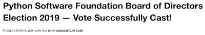 Voting is currently open for the 2019 Python Software Foundation Board of Directors Election. We have a great list of candidates this year so if you received a ballot, please vote.