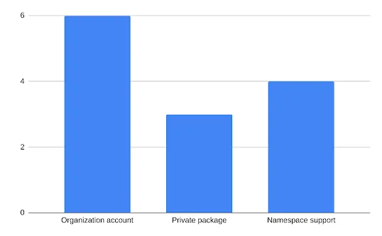 From the three surveys, it was observed that organizations accounts, namespace support and private packages were the three most important features for users. There were multiple requests for these three features. Based on the feedback we have received so far, we have made these key decisions-